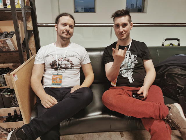 Na scenie zwyczajowo miały miejsce wykłady, które zwyczajowo za sprawą dobrej zabawy w innych miejscach terenu festiwalowego nie wzbudziły mojego zainteresowania, poza wywiadem Wojtka Trząskiego odnośnie podróży Route 66, o której ze swadą opowiadał. Po nim była moja kolej i tłem dla moich anegdot podróżniczych okazały się być te same slajdy Wojtka z Ameryki, mimo że o USA nie mówiłem wcale, a swoje slajdy terminowo przesłałem. No cóż. Zaraz potem Pan Przemek przeprowadził ze mną długi wywiad dla podcastu Alchemia, tak więc już za niedługo będziecie mogli posłuchać mojego głębokiego głosu na jutiubie, mimo że Na Dnie Fermentora na razie niczego nowego nie nagrało. Przy okazji – Przemek to nie tylko bardzo sympatyczny człowiek, ale również świetny rozmówca, potrafiący słuchać drugiej osoby, nie przeszkadzać w wypowiedzi i umiejętnie pobudzać rozmówcę do rozwijania tematów.