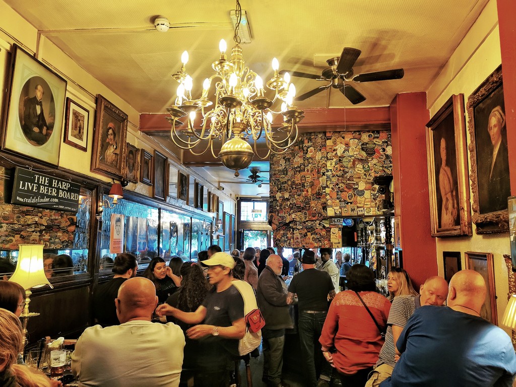 Jestem chyba w stanie zrozumieć jego wysokie oceny, ale zarazem nie podpisuję się pod nimi. The Harp to bardzo ciasny, piętrowy lokal, popołudniu napakowany klientami. Zapachy łączą się w miks taniej wody kolońskiej, rozlanego piwa oraz cytrusowych chmieli od rozlanego piwa. Wszystko robi wrażenie speluny dla klasy robotniczej, poza cenami – 16 funtów za dwa piwa i wodę mineralną to nawet jak na Londyn dość sporo. Okej – jest w zasadzie nieturystycznie i jest gwarno, ale to nie wystarczy do wyczarowania miejsca, do którego lubi się wracać.